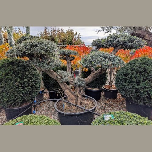 Formára nyírt olajfa prémium megjelenésű, nagy díszértékű növény.  Vastag, karakteres törzse és gondosan kialakított, gömbszerű lombfelhői azonnal mediterrán hangulatot teremtenek. Ez a típus nem továbbnevelésre, hanem kész, látványos dísznövényként ideális választás teraszra, belső udvarba, reprezentatív kertrészekbe.